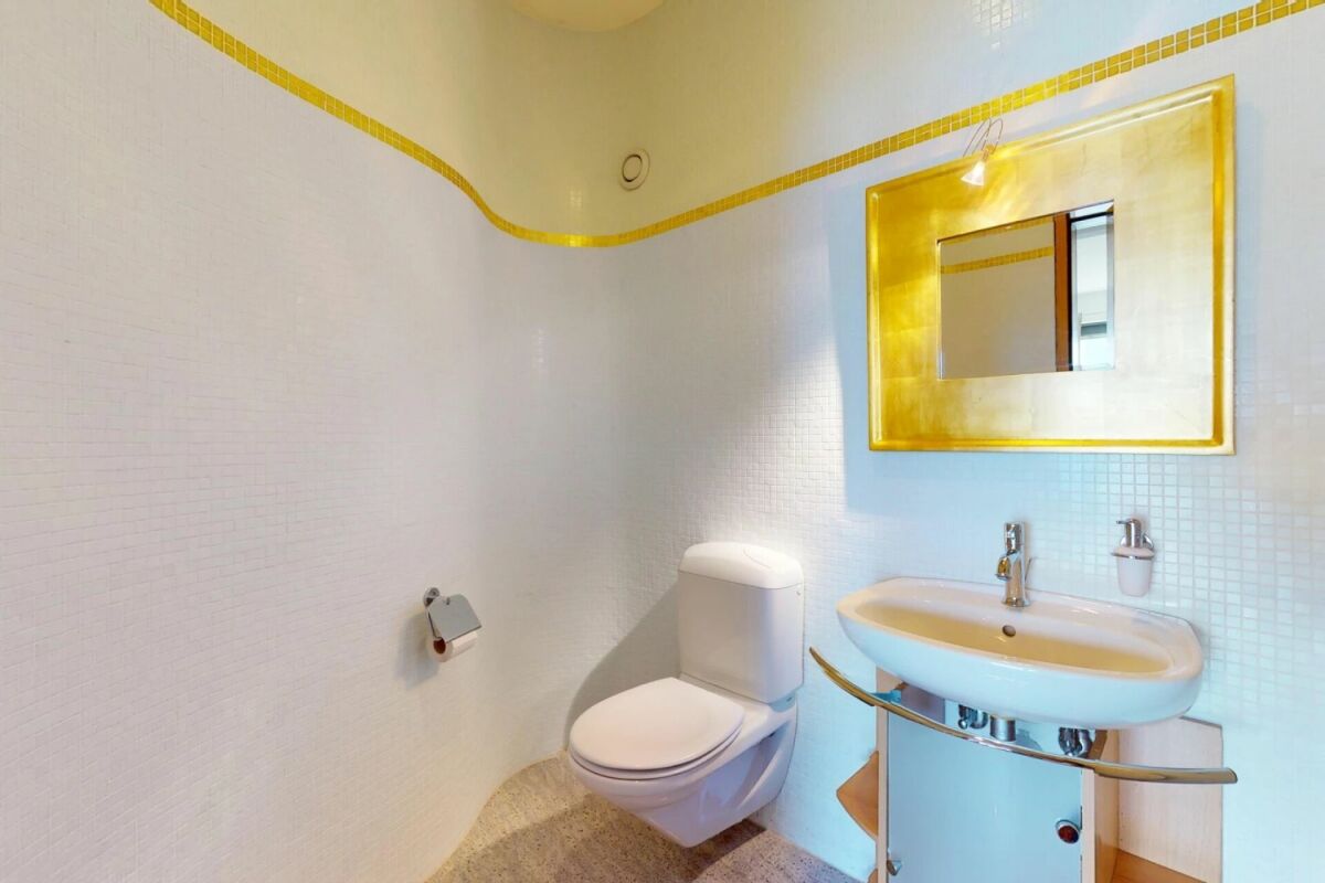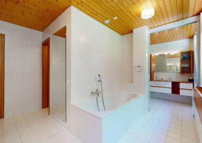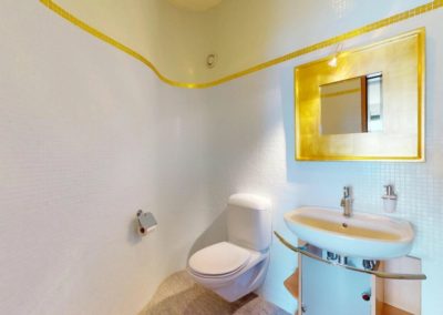 Salles de bains séparées par une porte coulissante vitrée avec baignoire, douche et WC séparés - rénovées en 2020
