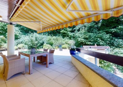 Belle terrasse de 150m2 afin de profiter des longues soirées d'été et balcons supplémentaires desservant chaque chambre à l'étage.