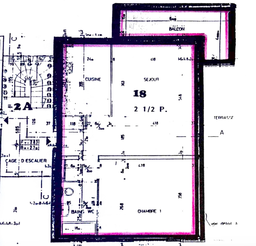 - 1 séjour de 22 m2 env. donnant sur un balcon en L