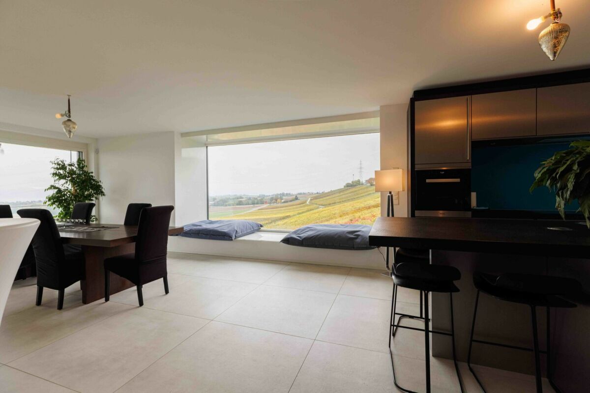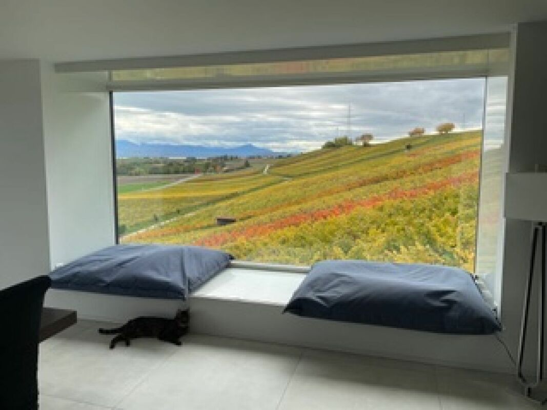 Nichée au coeur des vignes, cette propriété contemporaine d'environ 310 m² habitables (sur 914 m² de terrain) offre un cadre de vie unique avec vue panoramique à 180° sur le bassin lémanique.