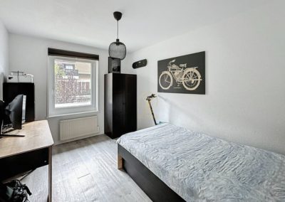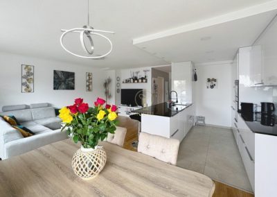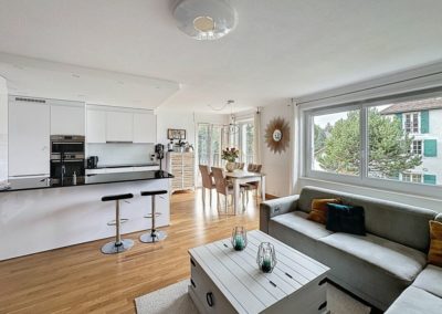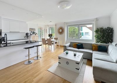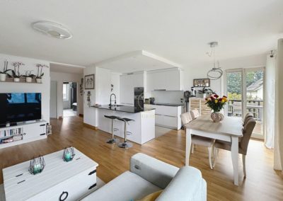 D'une surface PPE de 106 m² (dont 96 m² habitables), il dispose également d'une agréable terrasse d'environ 20 m², orientée au calme, avec un accès direct depuis la cuisine et la chambre parentale.