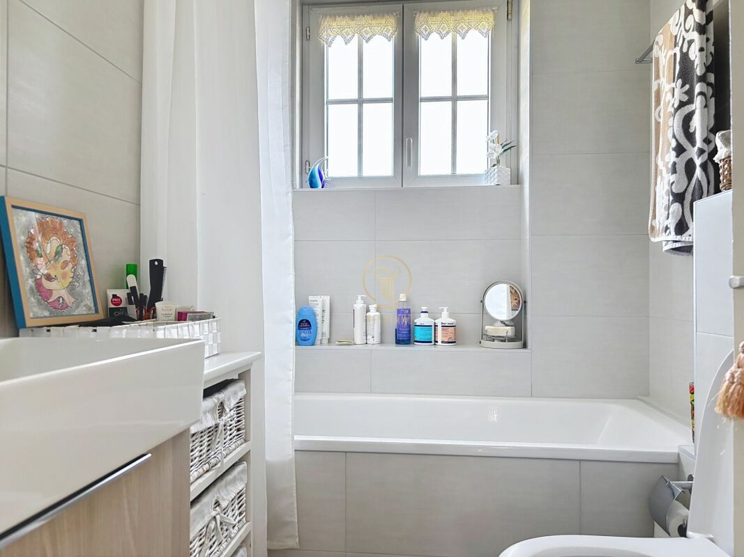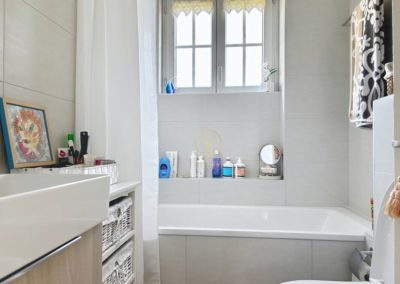 1 salle de bains avec lavabo, baignoire et WC (rénovée en 2019)