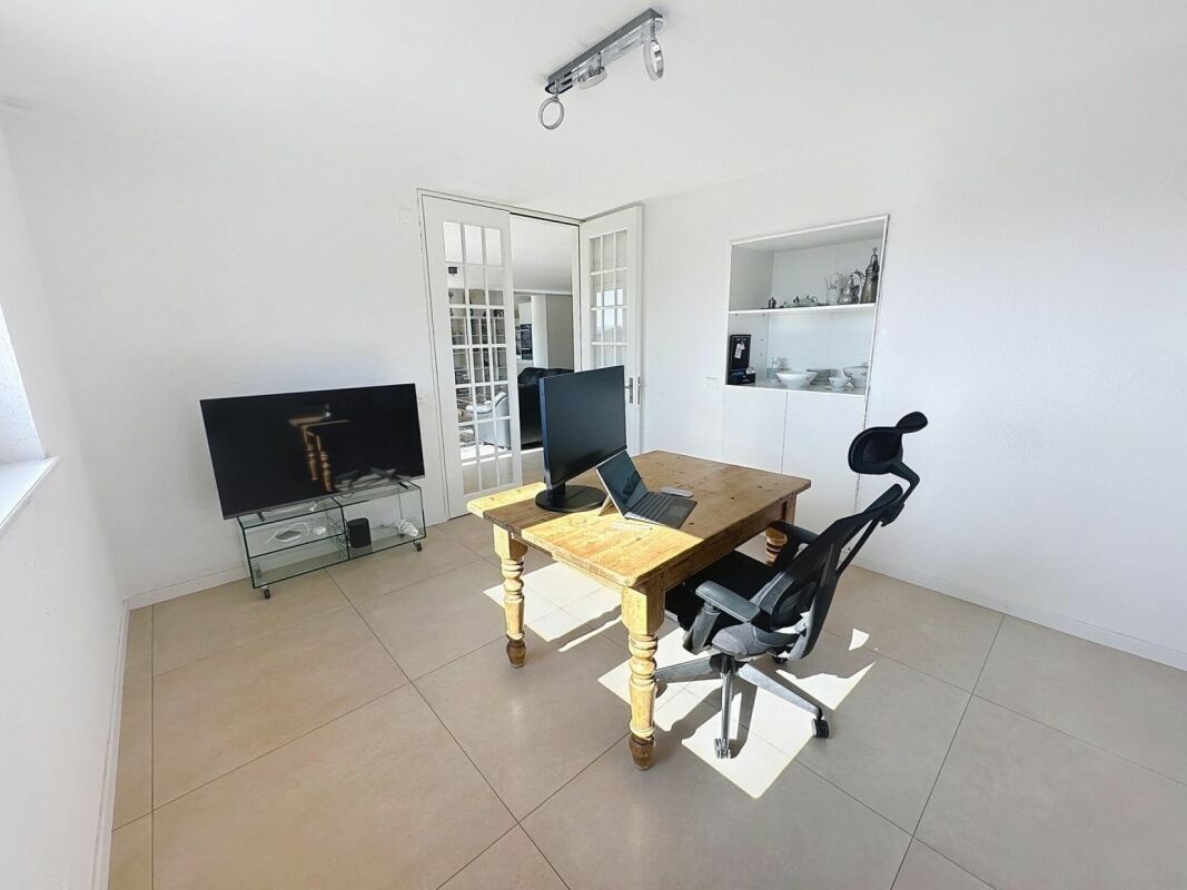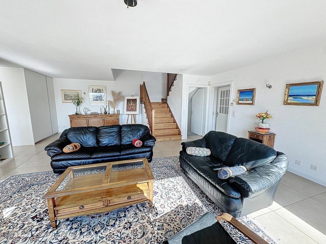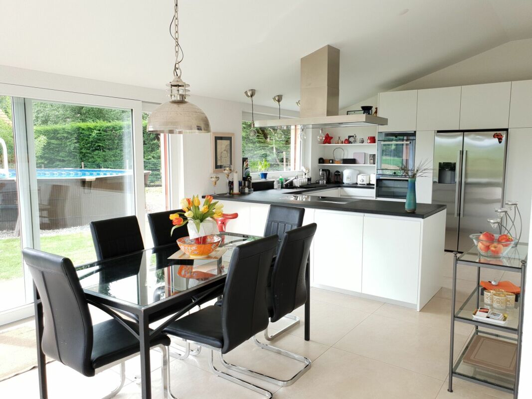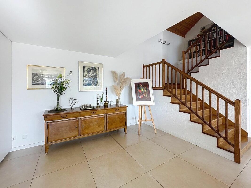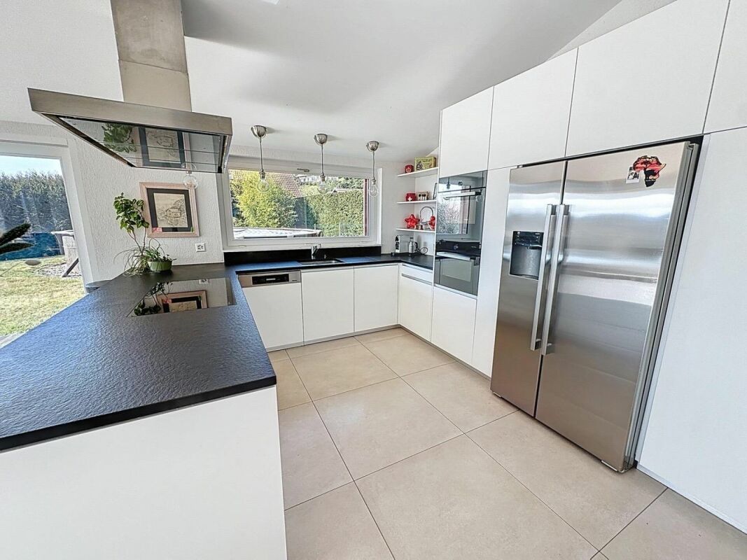 Le sous-sol est entièrement fini et comprend plusieurs pièces de stockage, une salle de loisirs et un espace technique. Le chauffage au sol et la pompe à chaleur air-eau garantissent un confort optimal tout au long de l'année.
