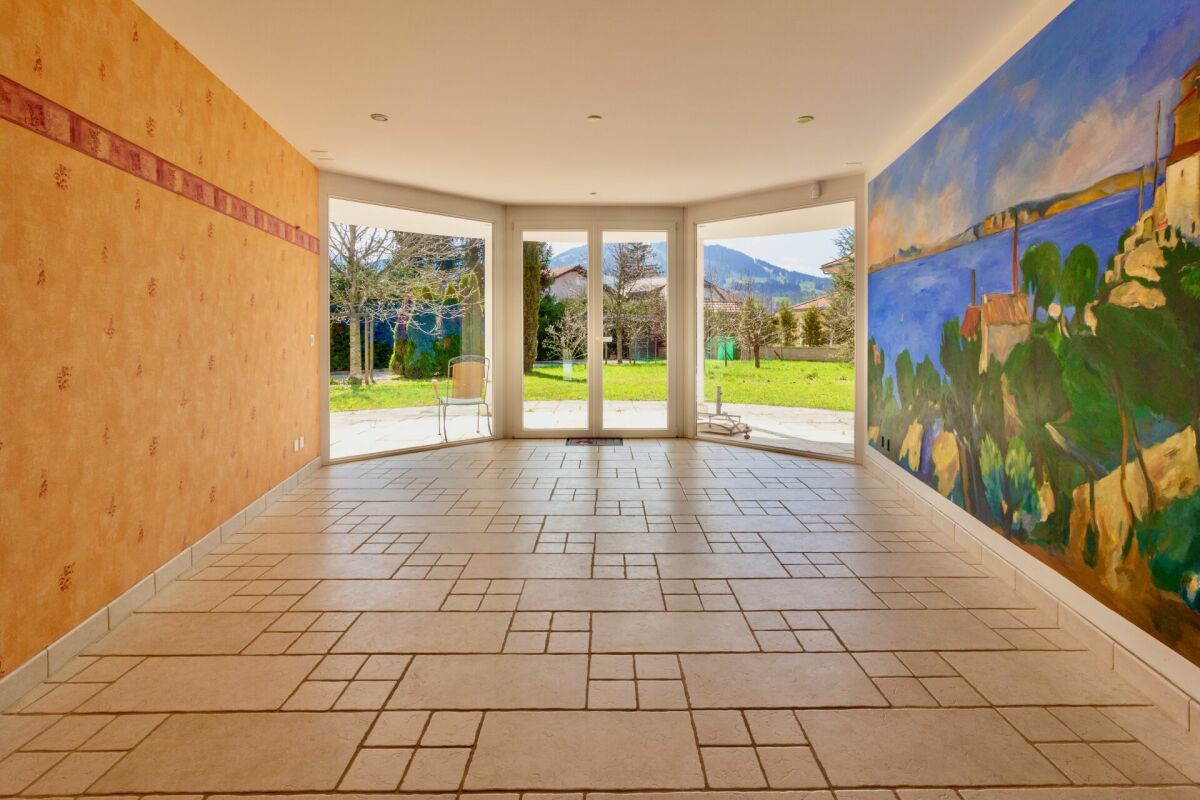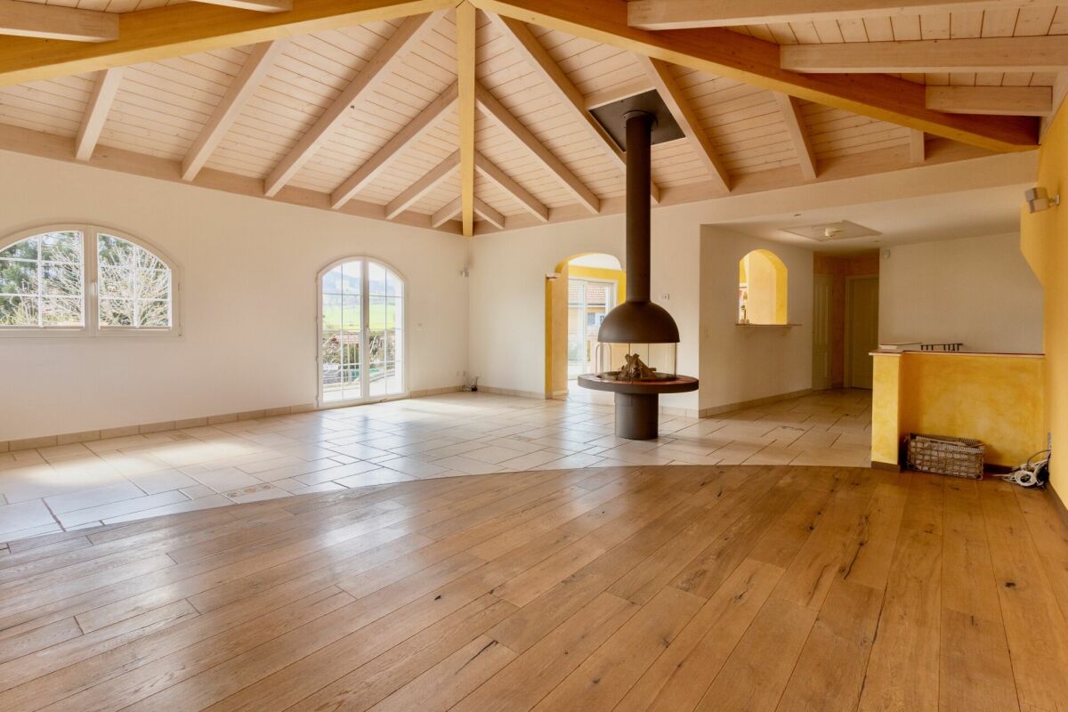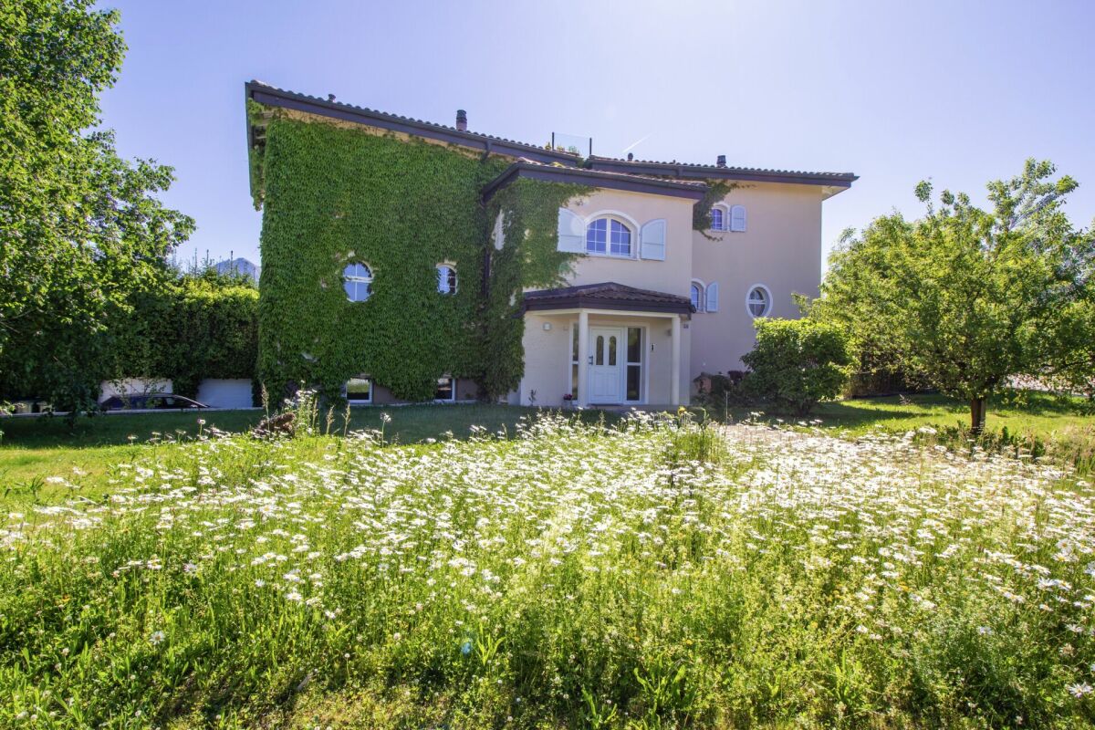La villa de 8 pièces compte une surface habitable nette d'environ 261 m2, une surface utile supplémentaire de 140 m2 pour une volumétrie de 2'065 m3. Elle se situe sur une parcelle de 1'746 m2