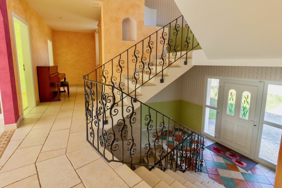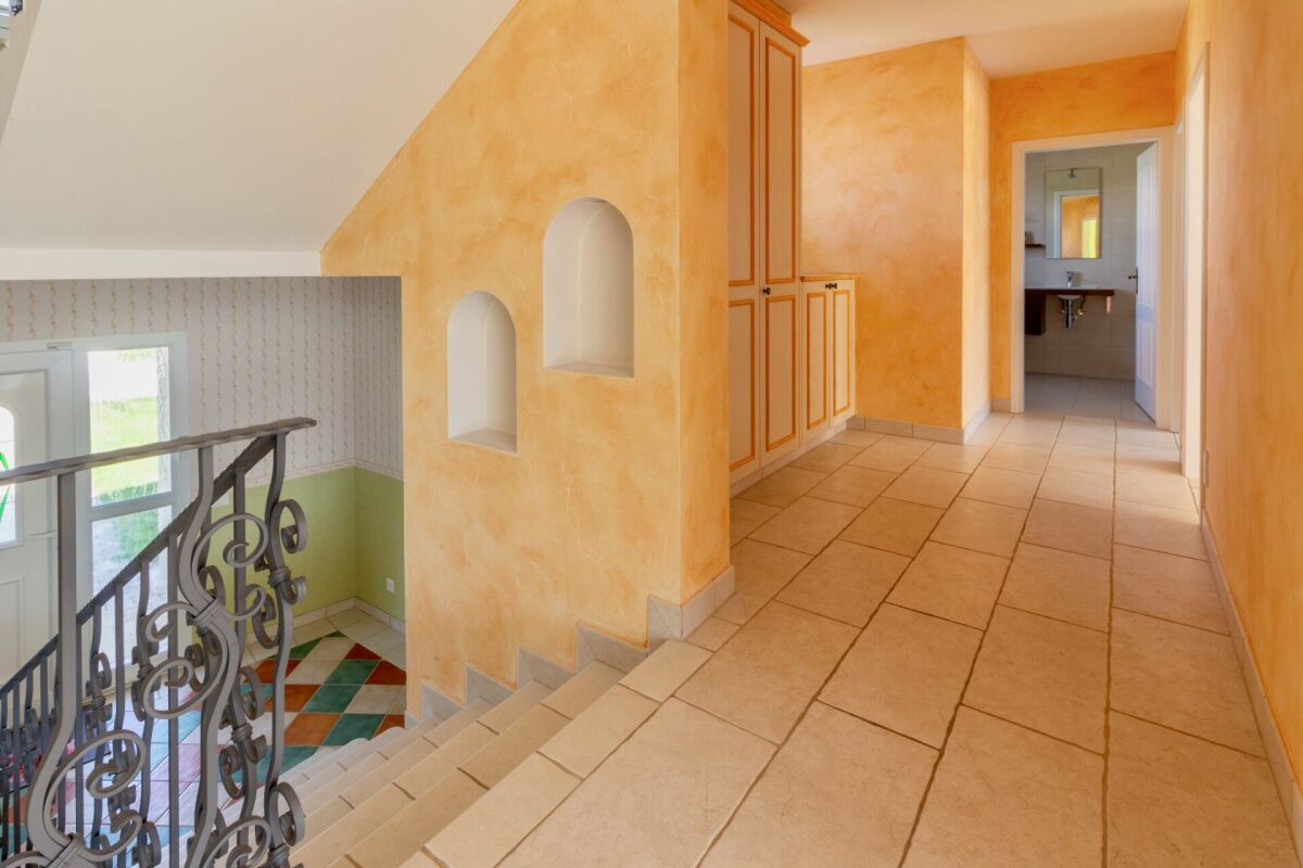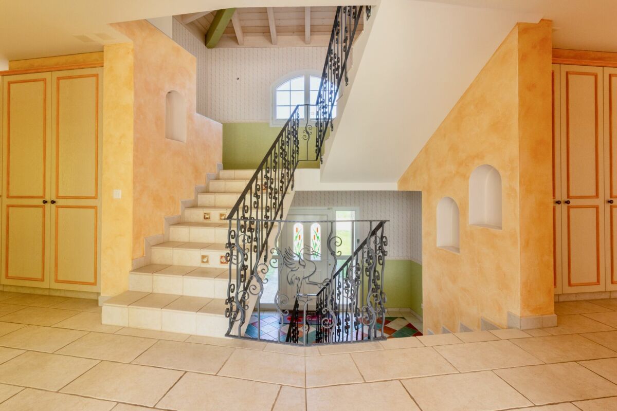 Une attention particulière a été portée à chaque détail et l'on s'en rend compte dès que l'on passe la porte. Les choix de carrelage, les alcôves de l'entrée et la superbe main courante en fer forgé avec ses motifs de grues donnent le ton. Tout a été conçu pour que l'expérience de vie soit rendue unique.