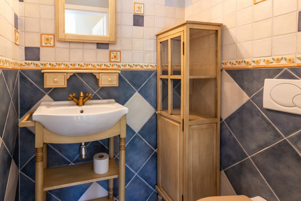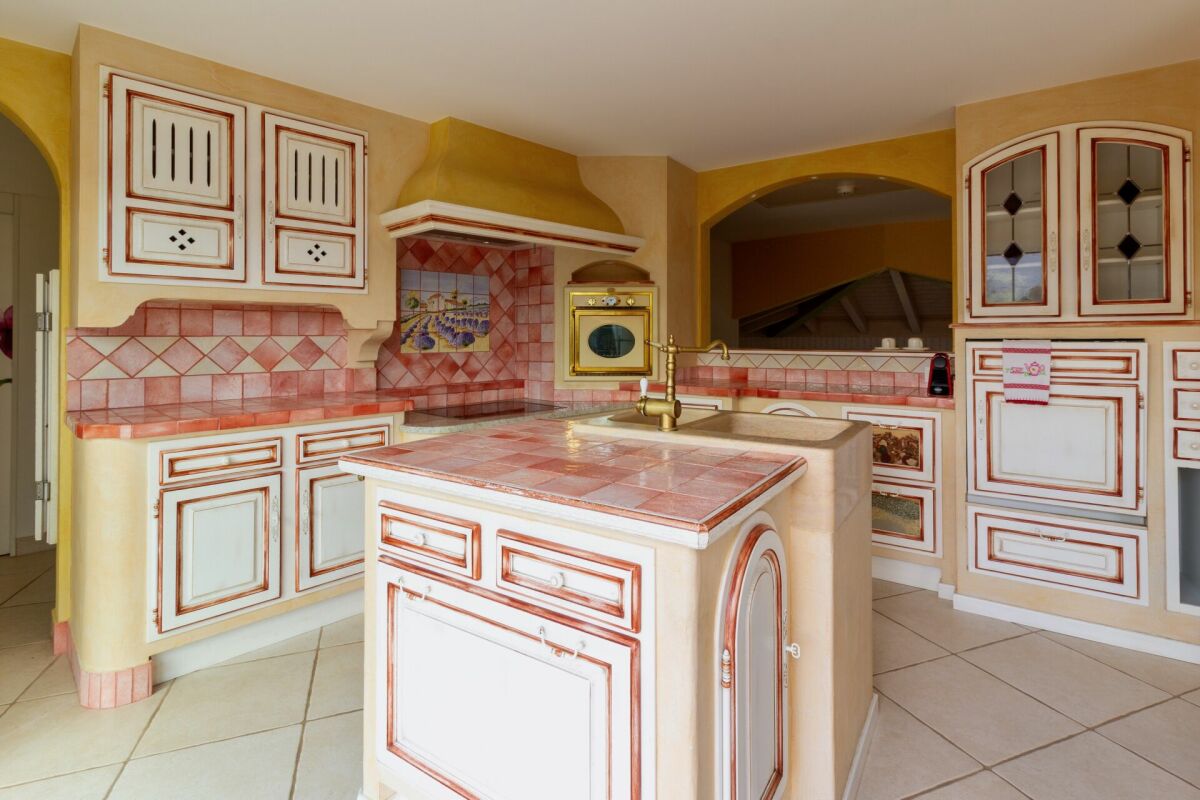 La maison qui baigne dans la lumière est marquée par un joyeux style méditerranéen, les couleurs y sont omniprésentes et rythment le passage apaisant d'une pièce à l'autre.