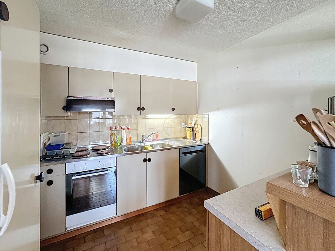 Cuisine semi-ouverte sur un lumineux séjour avec accès au balcon